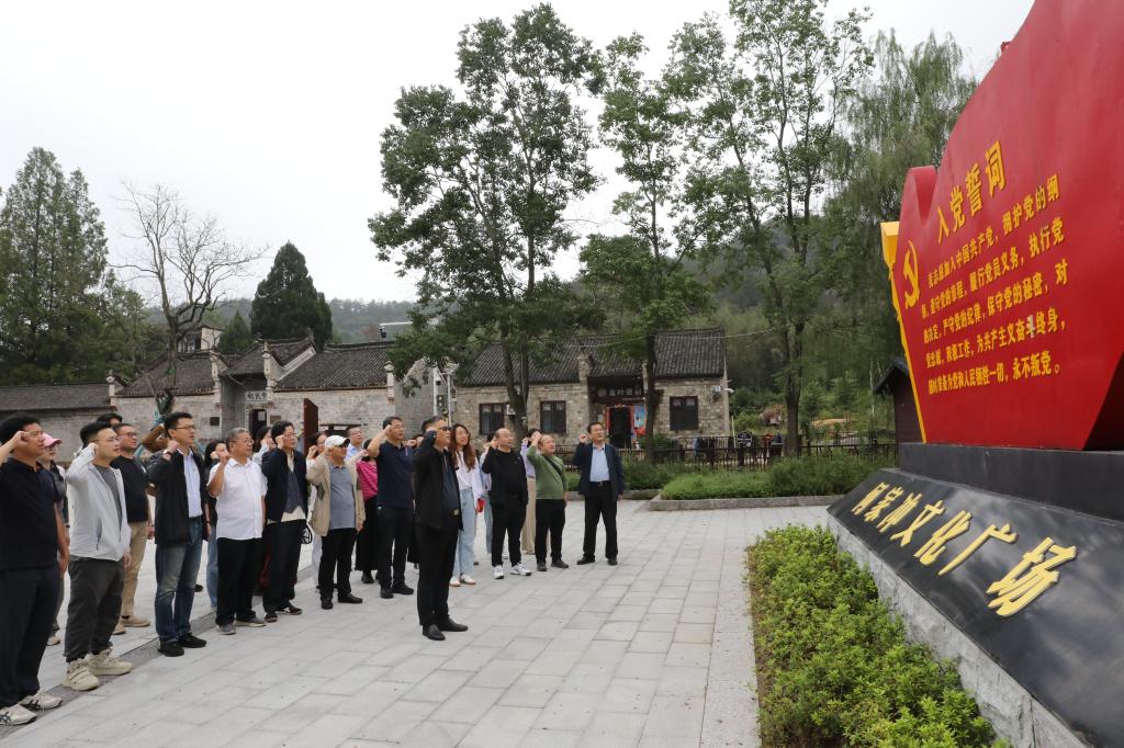 在何家冲文化广场,全体党员面对党旗,在我院党委书记尚红林的带领下,庄严重温入党誓词,铿锵誓言表达了不忘初心、牢记使命的坚定决心。随后,大家齐聚百年银杏树下,聆听当年红二十五军在此集结誓师的传奇故事,使同志们对长征精神有了更切身的体会。