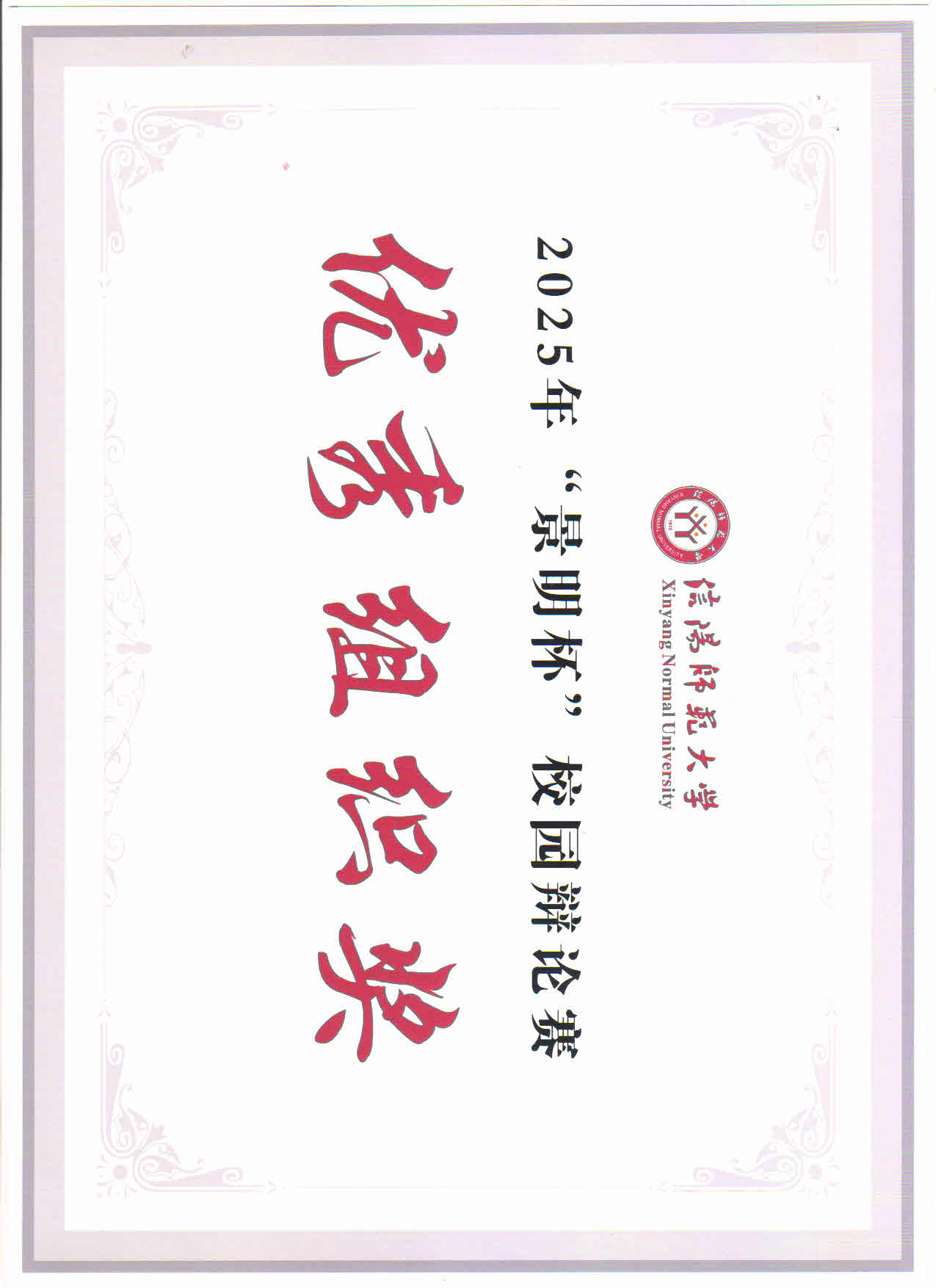 5月13日,信阳师范大学2025年“景明杯”校园辩论赛决赛在谭山书院博雅讲堂落幕。经过多轮角逐,yl6809永利官网辩论队凭借出色表现荣获2025年“景明杯”校园辩论赛季军,yl6809永利官网获评“优秀组织奖”。