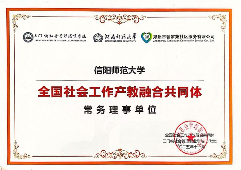 会议主题为:深化校企合作,共育社工人才;推动产教融合,赋能社工实践。张国强在致辞中指出,成立全国社会工作产教融合共同体是深化教育供给侧改革、服务现代化河南建设的重要举措。他强调,河南作为教育人口大省,始终坚持以教促产、以产助教,通过强化政策引导、载体建设和服务效能,推动产教融合走深走实。他对共同体提出四点期望:打造高素质社工人才培养“新高地”、构建政产学研协同“新引擎”、树立服务区域发展“新标杆”、激发行业生态优化“新动能”。卫祥玉、张原震等先后在会议上发言。会上还宣读了全国社会工作产教融合共同体3家理事长单位、30家副理事长单位和30家常务理事单位;信阳师范大学被选为常务理事单位,张玉鹏当选为常务理事。