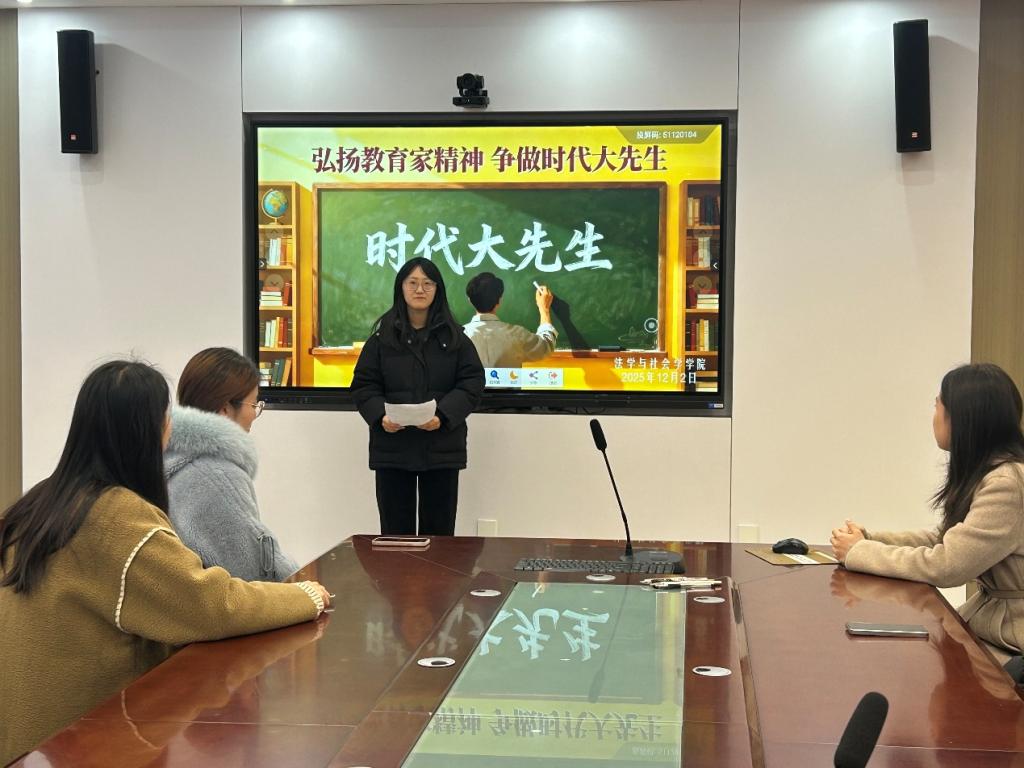12月2日,我院在社科楼412举办2025年研究生“弘扬教育家精神 争做时代大先生”演讲比赛初赛,多名同学精心准备并进行了激情洋溢的演讲。最终,谢珂同学脱颖而出进入校级决赛。