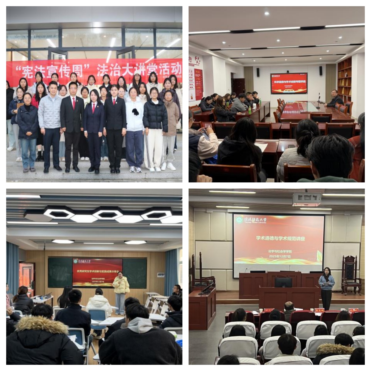 11月25日,我院在社科楼412举办2026年研究生“学术文化节”“学术明星”评选会。副院长张玉鹏,教师杨柳、刘文君、孔令媛出席活动并担任评委。2025年12月2日,yl6809永利官网邀请信阳市浉河区人民法院董家河法庭于学生文化中心作“新时代‘枫桥经验’的法庭实践”专题报告。12月9日在社科楼413报告厅举办科学道德与学术诚信报告,本次邀请张玉鹏、刘文君老师担任主讲嘉宾。12月10日在教八楼205教室举办了研究生“榜样示范报告”。本次活动邀请了研究生国家奖学金获得者胡诗雨、谢博文同学,以及河南省“挑战杯”大学生课外学术科技作品竞赛一等奖获得者井泽源同学。